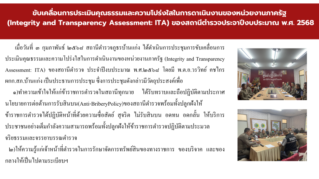วันที่ 14 มี.ค 2568 ภายใต้การอำนวยการของ พ.ต.อ.วรวิทย์ คชไกร ผกก.สภ.บ้านแก่ง ,พ.ต.ท.ชินวัฒน์ แก้วพัน