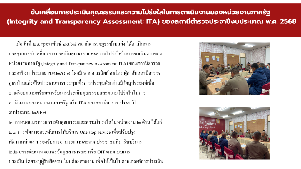 วันนี้ 30 กรกฏาคม 2568 เวลา 10.00 น. พ.ต.อ.วรวิทย์ คชไกร ผกก.สภ.บ้านแก่ง ได้ประชุมมอบนโยบายให้แก่ข้า