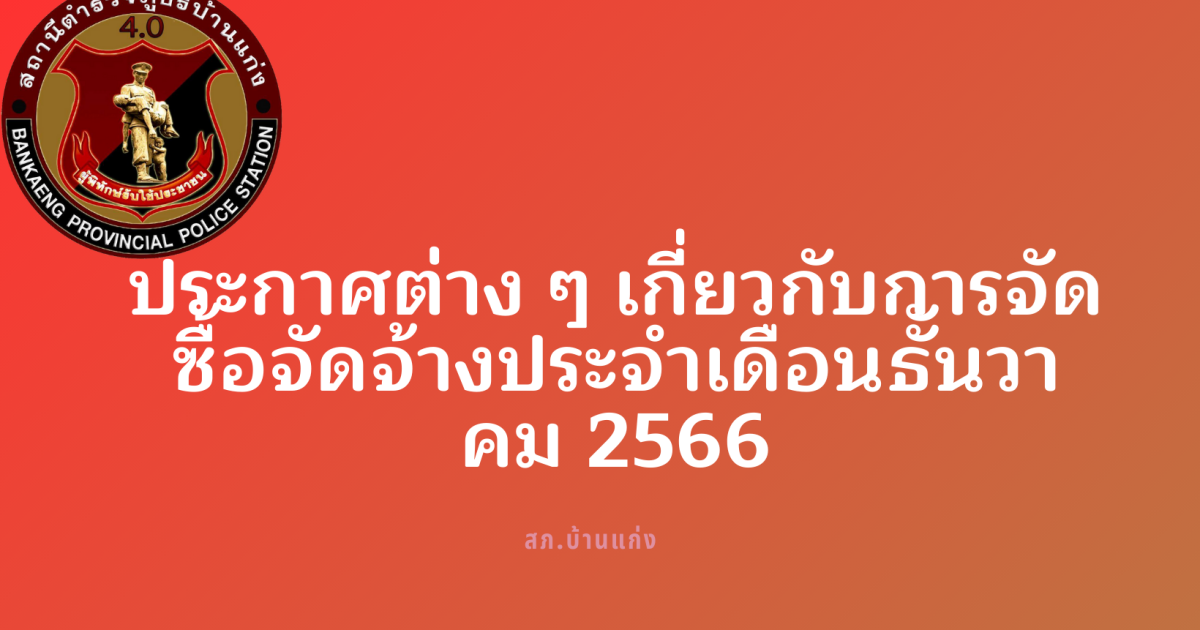 ประกาศเกี่ยวกับการจัดซื้อจัดจ้างประจำเดือนธันวาคม 2566
