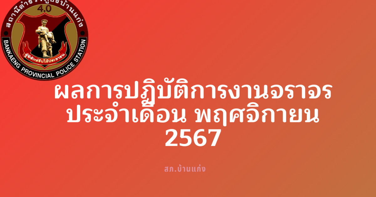 ผลการปฏิบัติการงานจราจร ประจำเดือน พฤศจิกายน 2567