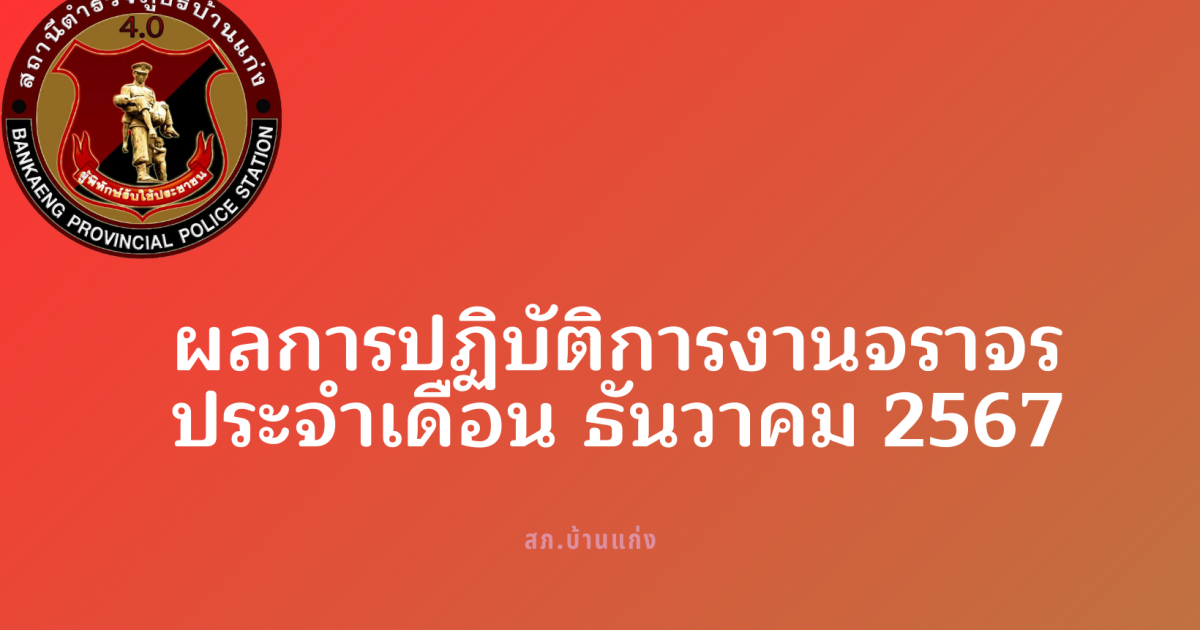 ผลการปฏิบัติการงานจราจร ประจำเดือน ธันวาคม 2567