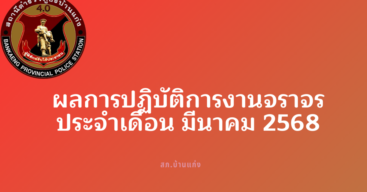 ผลการปฏิบัติการงานจราจร ประจำเดือน มีนาคม 2568