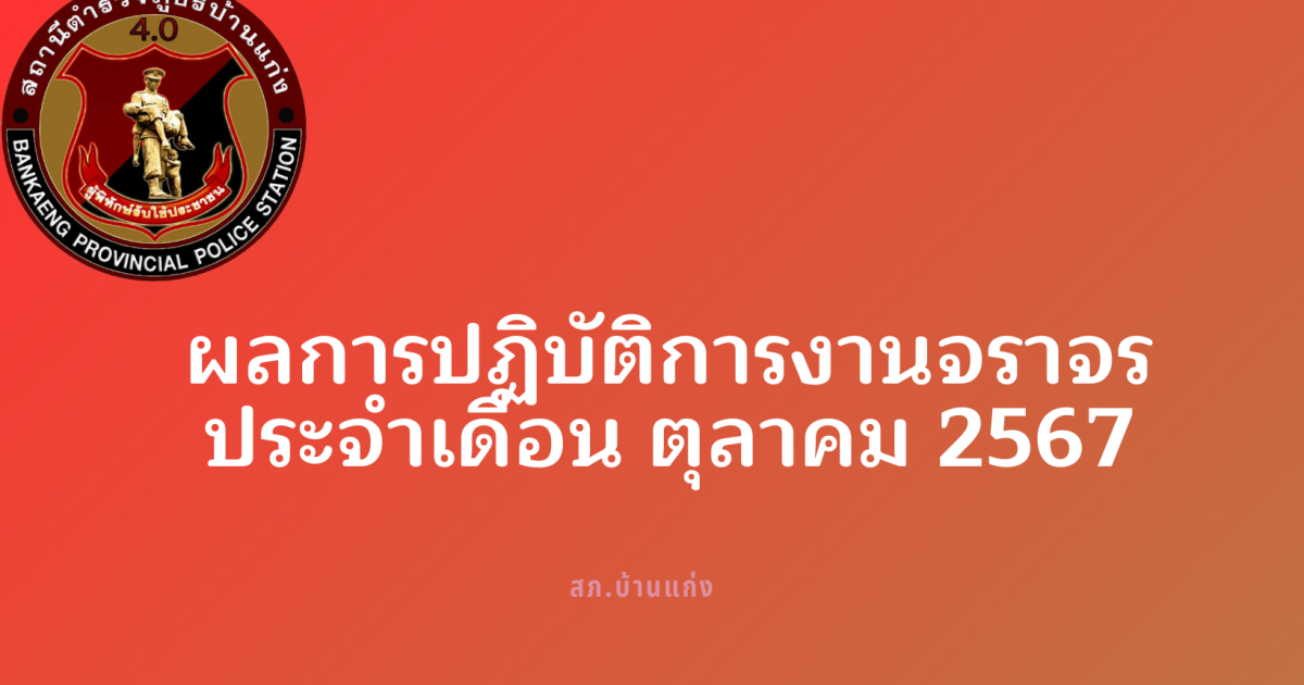 ผลการปฏิบัติการงานจราจร ประจำเดือน ตุลาคม 2567