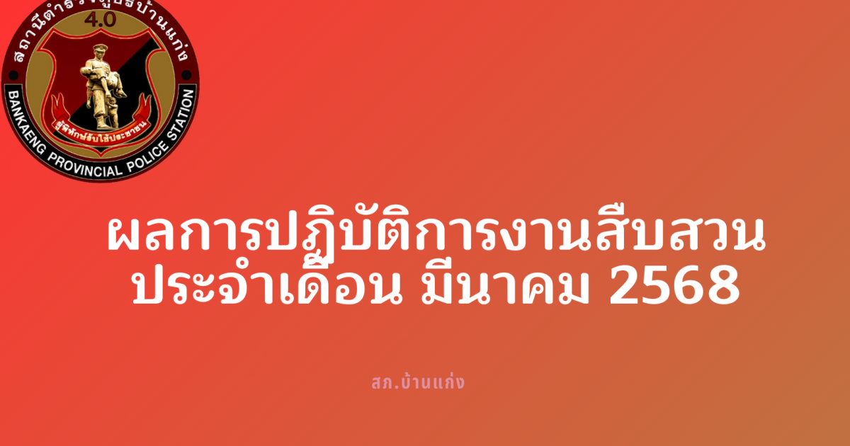 วันที่ 14 มี.ค 2568 ภายใต้การอำนวยการของ พ.ต.อ.วรวิทย์ คชไกร ผกก.สภ.บ้านแก่ง ,พ.ต.ท.ชินวัฒน์ แก้วพันธุ์พงศ์ รอง ผกก.สส.สภ.บ้านแก่ง ชุดสืบสวน สภ.บ้านแก่ง นำโดย พ.ต.ท.เสริมพงษ์ วงค์สวัสดิ์ สว.สส.สภ.บ้านแก่ง ได้ร่วมกันจับกุมผู้ต้องหา ดังนี้