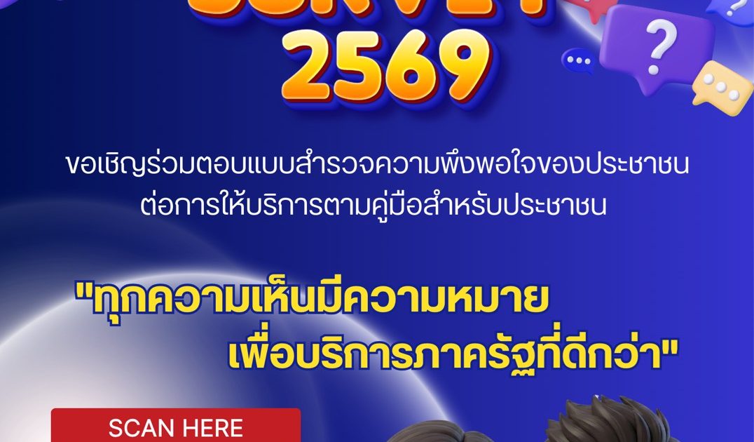 ร่วมตอบแบบสำรวจความพึงพอใจของประชาชนต่อการให้บริการของหน่วยงานรัฐ ปี พ.ศ.2569