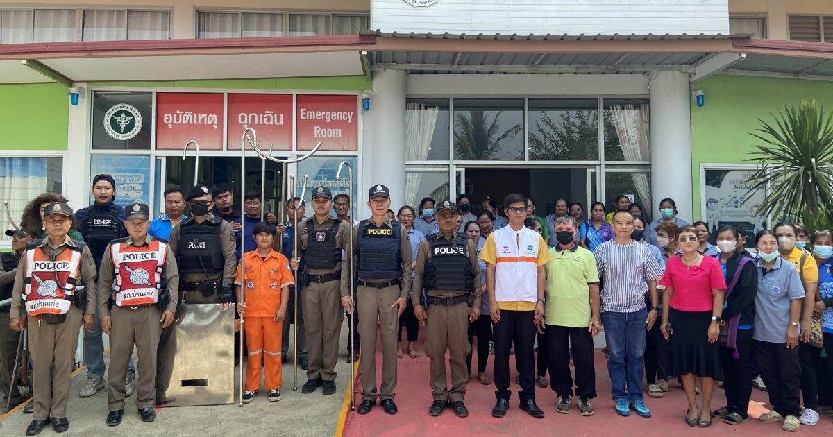 วันนี้ ( 8 มี.ค. 67 ) ภายใต้การอำนวยการของ พ.ต.อ.วรวิทย์ คชไกร ผกก.สภ.บ้านแก่ง , พ.ต.ท.ชัยรัชต์ ทองยัง รอง ผกก.ป.สภ.บ้านแก่ง , พ.ต.ท.ชินวัฒน์ แก้วพันธุ์พงศ์ รอง ผกก.สส.สภ.บ้านแก่ง มอบหมายให้ พ.ต.ท.ไพฑูรย์ นิตรา สวป.สภ.บ้านแก่ง , พ.ต.ท.เสริมพงษ์ วงศ์สวัสดิ์ สว.สส.สภ.บ้านแก่ง พร้อมชุด สายตรวจรถยนต์ 20 , จราจร , ชุดสืบสวน ร่วมกับ หน่วยงาน รพ.สต.แสนตอ , หน่วยงานป้องกันและบรรเทาสาธารณะภัย อบต.สารจิตร บรรยายให้ความรู้และสาธิตแผนเผชิญเหตุบุคคลวิกลจริตคุ้มคลั่ง เพื่อให้ทางชุมชนได้ทราบวิธีการระงับเหตุและวิธีปฏิบัติเมื่อเผชิญเหตุ ณ รพ.สต.แสนตอ ต.สารจิตร อ.ศรีสัชนาลัย จ.สุโขทัย ตั้งแต่เวลา 09.00 น.