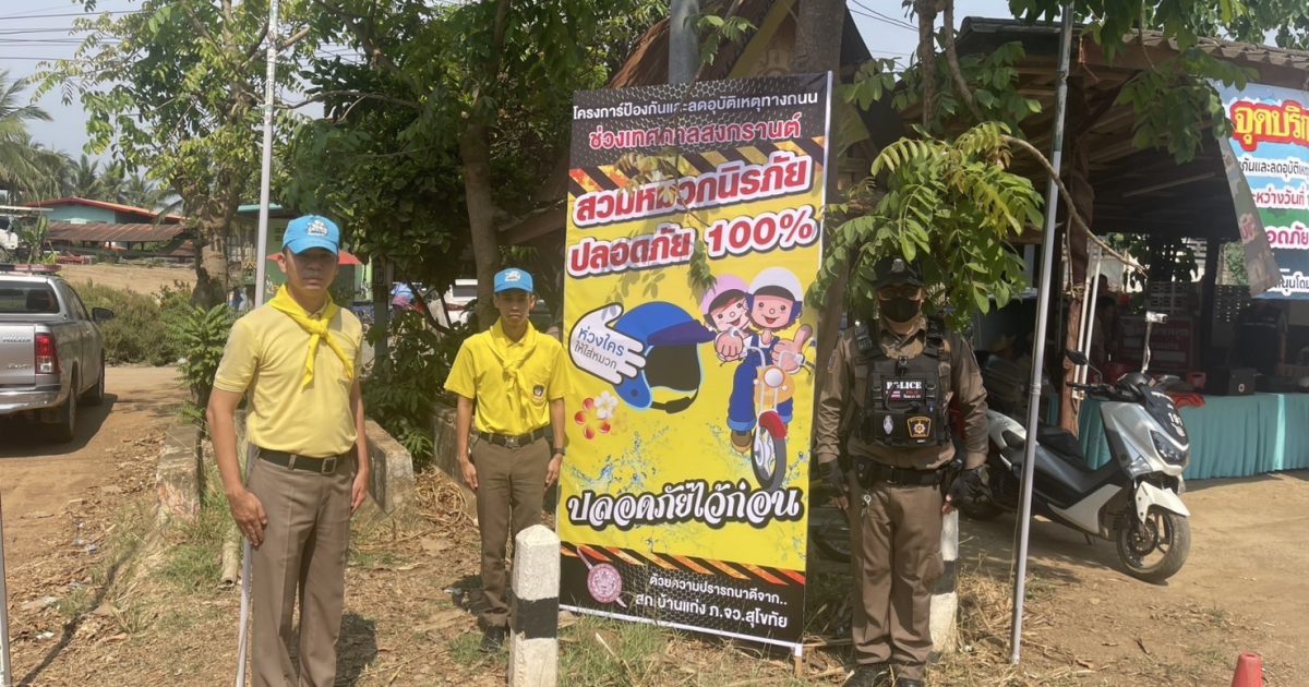 วันที่ 14 เมษายน 2568 เวลา 10.00 น. ภายใต้การอำนวยการของ พ.ต.อ.วรวิทย์ คชไกร ผกก.สภ.บ้านแก่ง มอบหมายให้ พ.ต.ต.สมนึก ช่างเก่ง สว.อก.สภ.บ้านแก่ง พร้อมด้วยข้าราชการตำรวจจิตอาสา รวมจำนวน 5 คน เพื่อจัดกิจกรรมจิตอาสาแจกหมวกนิรภัย ตามโครงการ ” จิตอาสาจราจร รณรงค์การขับขี่ปลอดภัยสวมหมวกนิรภัย เพื่อลดอุบัติเหตุทางบก ในช่วงเทศกาลสงกรานต์ ปี 2568 ” ณ ศูนย์จราจรสี่แยกสารจิตร ม.12 ต.สารจิตร อ.ศรีสัชนาลัย จ.สุโขทัย