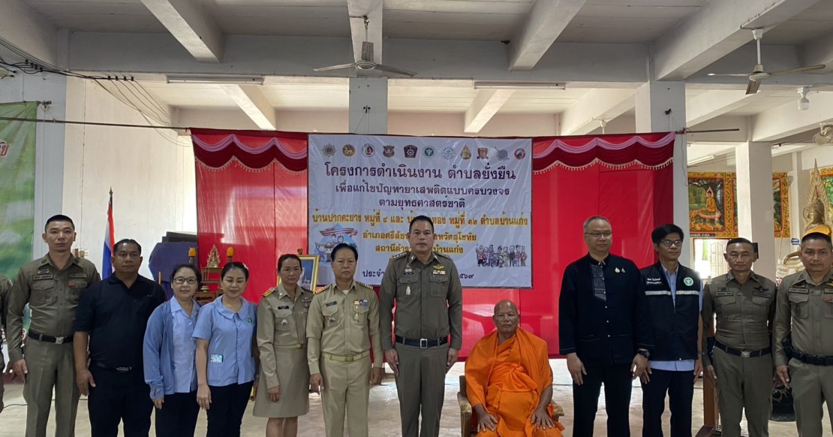 วันนี้ (10 กุมภาพันธ์ 2569) เวลา 09.30 น. นายเอกสิฏฐ์ วิไลศิลป์ นายอำเภอศรีสัชนาลัย ให้เกียรติเป็นประธานในพิธีเปิดโครงการดำเนินงานตำบลยั่งยืน เพื่อแก้ไขปัญหายาเสพติดแบบครบวงจร ตามยุทธศาสตร์ชาติ โดยมี พระครูสุภัทรปัญญาคม เจ้าคณะตำบลบ้านแก่ง เจ้าอาวาสวัดปากคะยาง, นายเตชทัต หอมบุปผา สาธารณสุขอำเภอศรีสัชนาลัย, นายแพทย์ชัยพร อมรมุณีพงศ์ ผู้อำนวยการโรงพยาบาลศรีสัชนาลัย, นางสาวกชวรรณ ธรรมรส ผู้อำนวยการโรงพยาบาลส่งเสริมสุขภาพตำบลบ้านปากคะยาง, นายนงค์ บัวผัด กำนันตำบลบ้านแก่ง, นางนิตา มหากุศล ผู้ใหญ่บ้านหมู่ที่ 12 บ้านแคทอง พร้อมผู้นำคุ้มและประชาชนหมู่บ้าน หมู่ที่ 4 และหมู่ที่ 12 เข้าร่วมพิธีเปิดฯ และร่วมลงนามบันทึกข้อตกลงความร่วมมือ (MOU) เพื่อร่วมกันแก้ไขปัญหายาเสพติด ทั้งนี้ พ.ต.อ.วรวิทย์ คชไกร ผกก.สภ.บ้านแก่ง , พ.ต.ท.ขวัญพัฒน์ คำมั่น รอง ผกก.ป.สภ.บ้านแก่ง , พ.ต.ต.เรวัตน์ แก้วเสลา สวป.สภ.บ้านแก่ง พร้อมด้วยชุดปฏิบัติการชุมชนยั่งยืนฯ ให้การต้อนรับ ณ วัดปากคะยาง ตำบลบ้านแก่ง อำเภอศรีสัชนาลัย จังหวัดสุโขทัย