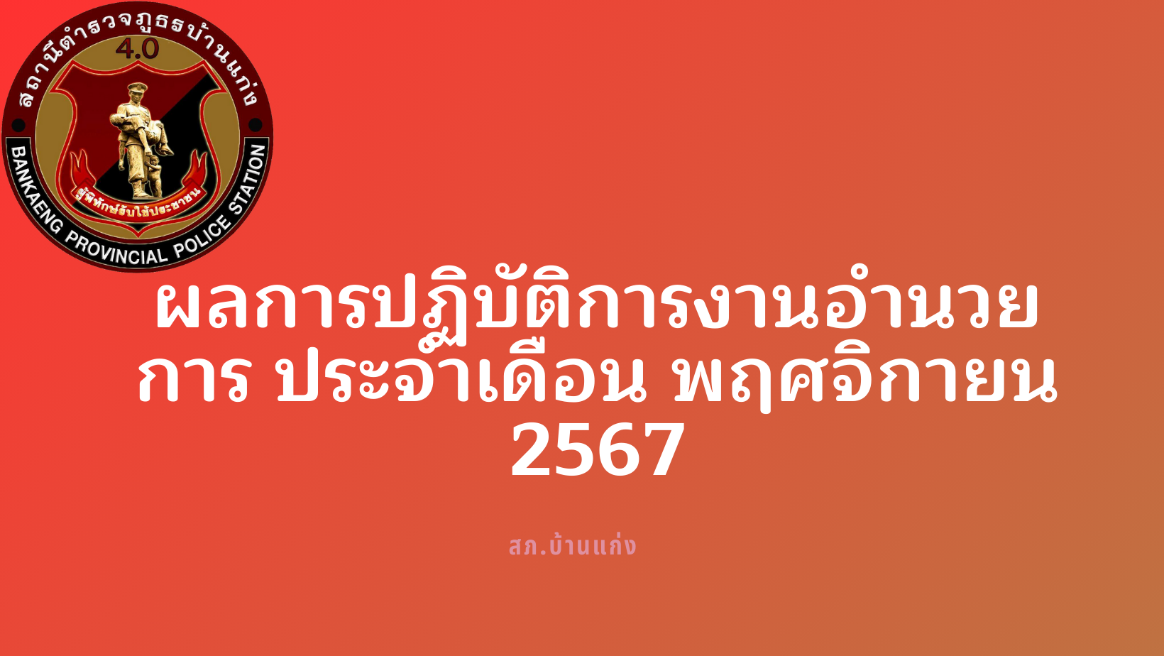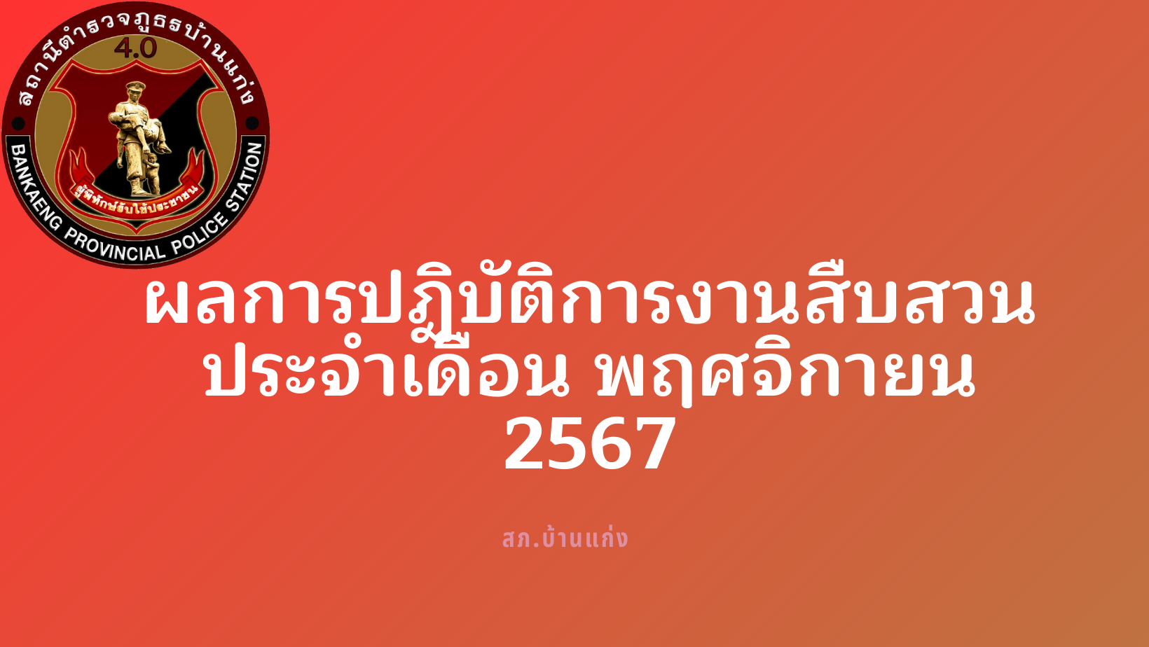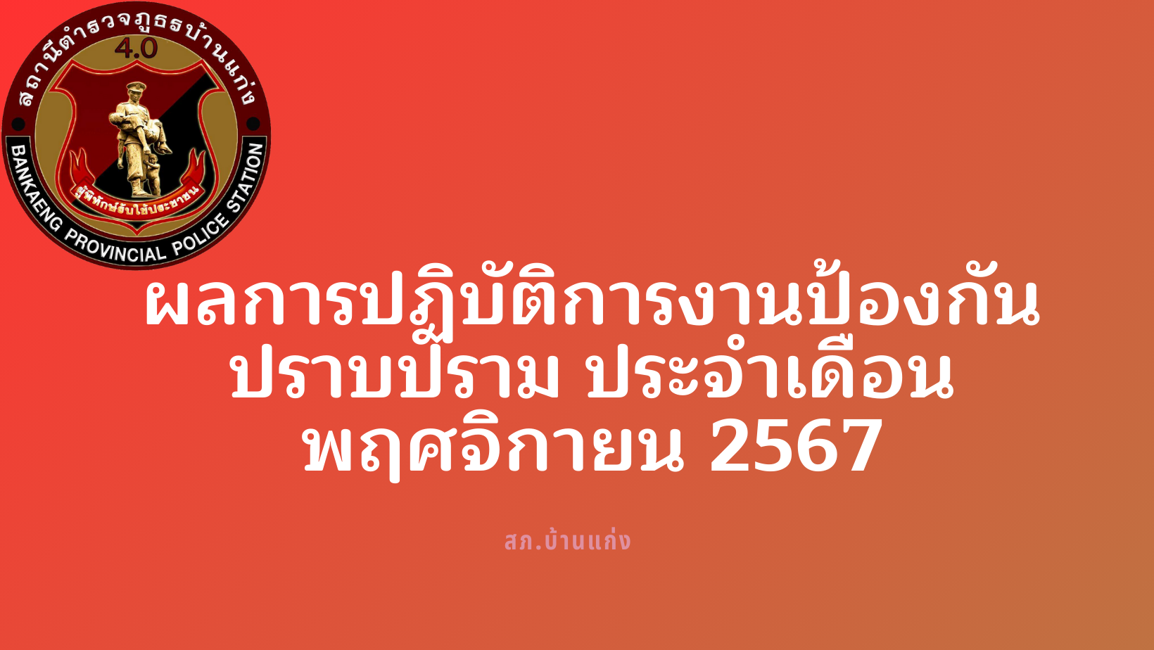 ผลการปฏิบัติการงานป้องกันปราบปราม ประจำเดือน พฤศจิกายน 2567