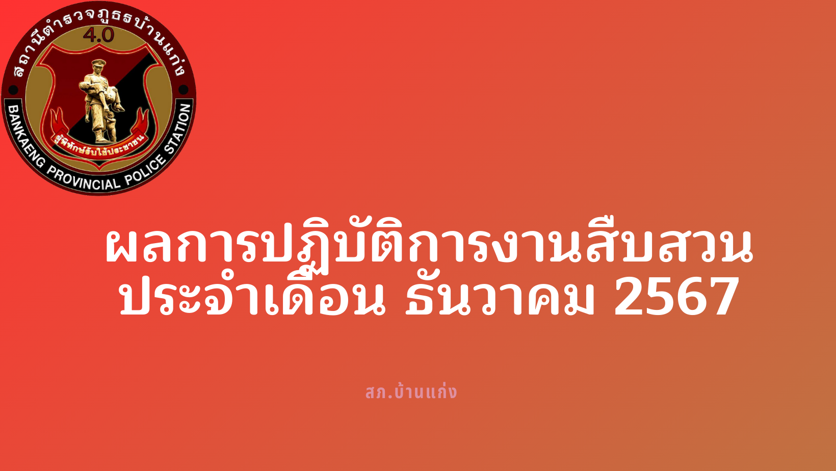 วันที่ 18 ธันวาคม พ.ศ.2567 เวลา 09.00 น. พ.ต.ท.ธงชัย เจิมขุนทด สว.สอบสวน.