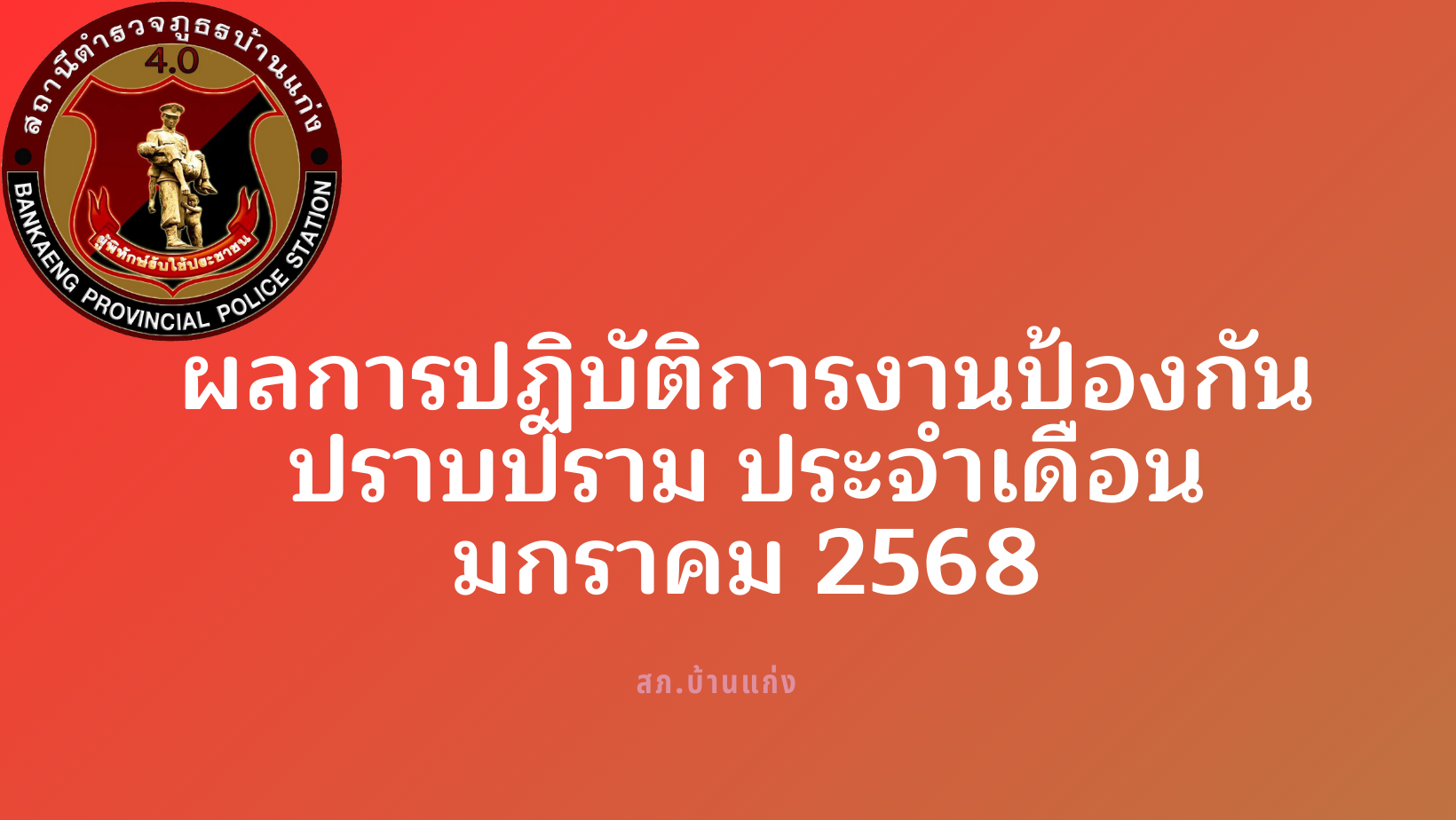 ผลการปฏิบัติการงานป้องกันปราบปราม ประจำเดือน มกราคม 2568